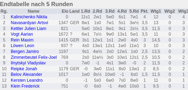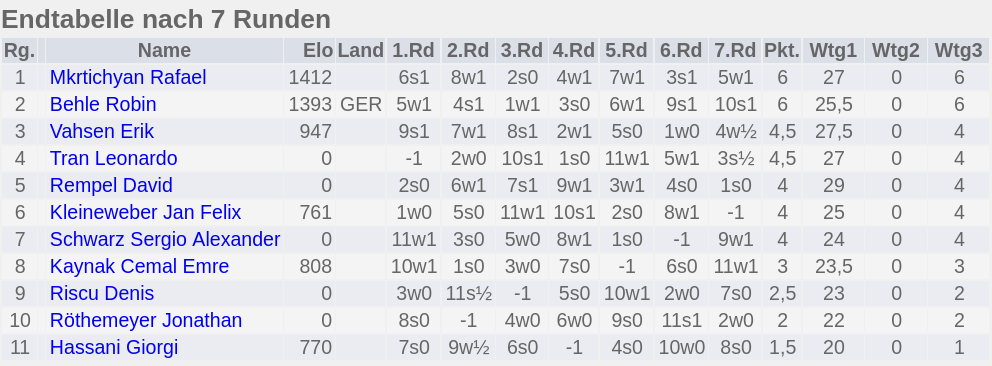 Gleich tat ihm das Rafael Mkrtichyan in der U14-Klasse, Leo Tran und David Rempel belegten mit Platz 4 und 5 gute Plätze im oberen Mittelfeld.